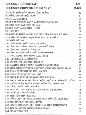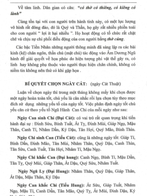 CẢM NANG CHỌN NGÀY LANH THÁNG TỐT – Cuốn sách THẦN DIỆU Không-Thể-Thiếu trong mỗi gia đình Việt Theo phong tục từ trước tới nay nhiều người thường kén ngày lành tháng tốt để: xuất hành, động thổ, đổ bê tông mái, cất nóc, nhập trạch, khai trương, ăn hỏi, rước dâu, ký hợp đồng, hộ liệm, di quan, phá nấm, nhập phủ (hạ huyệt)… Trước là trọn vẹn niềm tin về tâm linh, sau là yên tâm tư tưởng để tiến hành công việc.Do nhu cầu nhiều như thế nên thông tin, sách vở, tài liệu từ xưa tới nay có quá nhiều (tồn tại rất nhiều mâu thuẫn).Nếu không phải người tinh thông có chuyên môn thì khó tìm được ngày giờ vừa ý (đa thư loạn mục).