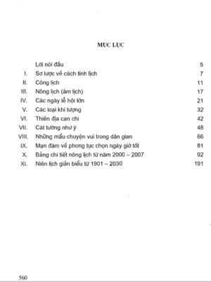 - Chương X: Bảng chi tiết nông lịch từ năm 2000 – 2007