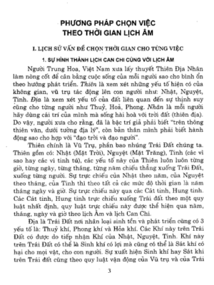 Chọn việc theo lịch âm như thế nào? Cơ sở từ đâu? Người Trung Hoa, Việt Nam xưa lấy thuyết Thiên Địa Nhân làm nòng cốt để cân bằng cuộc sống của mỗi người sao cho bình ổn theo hướng phát triển. Trái Đất từ nó quay một vòng và qua 12 thời khắc mà đón nhận sự tác động của các vì tinh tú, của nhât, nguyệt theo chiều hướng tốt hoặc xấu tới mỗi người. Để biết sự tác động này qua đó mà biết “đạo trời” và “thông thiên văn, tường địa lý”.