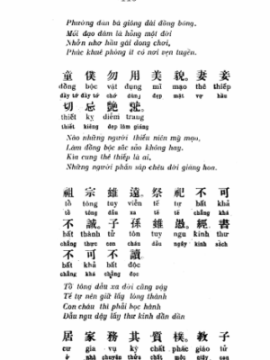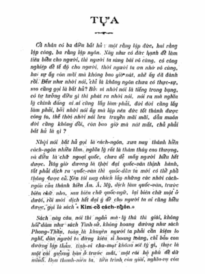 Cuốn sách 128 trang kể cả lời tựa, tập hợp CLII (152) “cách ngon của thánh hiều Âu, Á, Mỹ, dịch làm quốc văn, trước biên chữ nho, sau biên chữ quốc ngữ, lại biên chữ một ở dưới, rồi mới dịch hết đại ý để cho người ta ai cũng hiểu được…?