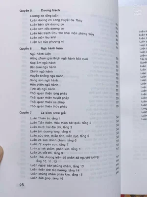 Gồm các phần: Khái quát, Khảm quái, Cấn quái, Chấn quái, Tốn quái, Ly quái, Đoài quái đối với con người và vũ trụ.