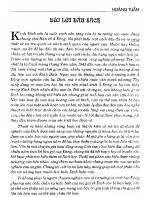 Thoát ra khỏi những ràng buộc và thành kiến về mê tín dị đoan để nghiên cứu Kinh Dịch dưới ánh sáng của những nguyên lý khoa học, ta sẽ tìm lại được sự uyên bác của người xưa, góp phần để giữ gìn những gì là văn hóa truyền thống hàng ngàn năm để lại, theo thiển ý của chúng tôi là điều rất nên làm. Tác giả viết ra tài liệu này, móng muốn giúp ích được một phần nhỏ đối với những bạn muốn tìm hiểu Dịch hiện nay.
