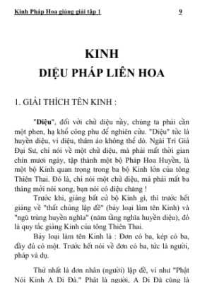 “Kinh Diệu Pháp Liên Hoa Giảng Giải” có hai mươi tám phẩm, thứ nhất là phẩm tựa, tường thuật nhân duyên của Kinh văn. Bổn lai tất cả các kinh văn, phẩm đầu tiên không gọi là phẩm tựa, nhưng chỉ có bộ Kinh Pháp Hoa này, dùng phẩm thứ nhất làm phẩm tựa, phẩm phương tiện thứ hai dùng quyền xảo phương tiện để giáo hóa chúng sinh.