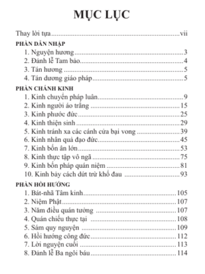 Quyển “Kinh Phật cho người mới bắt đầu” gồm 3 phần: Phần nghi thức dẫn nhập; Phần chánh Kinh, Phần sám nguyện và hồi hướng.
