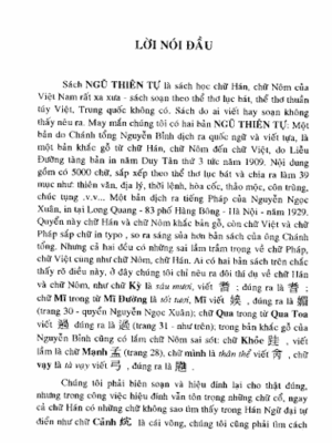Ngũ Thiên Tự là sách học chữ Hán, chữ Nôm của Việt Nam rất xa xưa – sách soạn theo thể thơ lục bát, thể thơ thuần túy Việt, Trung Quốc không có. Dày 390 trang giả chỉ 200.000/miễn phí vận chuyển toàn quốc