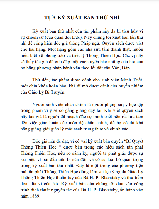 Bộ sách này mà hôm nay chúng tôi đưa ra cho công chúng thẩm xét là kết quả công trình học Đạo của chúng tôi với các Đấng Chân Sư của Phương Đông. Nó được đưa ra cho những người sẵn sàng chấp nhận sự thật bất cứ ở đâu và sẵn sàng bênh vực chân lý, dù cho phải đương đầu với thành kiến của người đời. Nó có mục đích giúp người học Đạo tìm ra những nguyên tắc căn bản nòng cốt của những triết hệ cổ xưa.