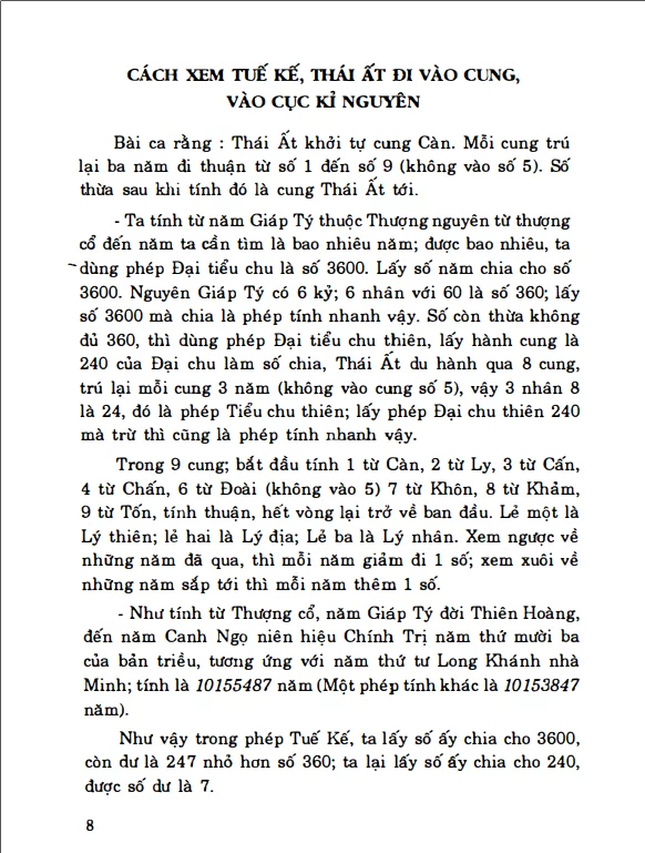 Tính Thái Ất trong Tuế Kế; tìm Kế thần; tìm Thiên mục – Văn xương; tìm Khách mục – Thủy kích, tìm Chủ khách; tìm Chủ khách, Đại, Tham, Tướng và ý nghĩa của Quan, Tù, Yểm, Bách, Kích; chọn Chủ, Khách và Thái Ất, tốt xấu;…