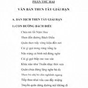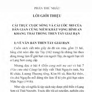 - Cuốn sách viết dựa theo bản sách giấy dó gồm 21 bài bằng chữ nôm dân tộc Tày (162 trang) là những bài then dùng trong làm lễ giải hạn của người Tày ở Lạng Sơn. Và Thái Nguyên. (phần phụ lục có in ảnh)