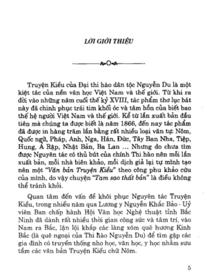 Truyện Kiều của Đại thi hào Nguyễn Du là một kiệt tác của nền văn học Việt Nam và thế giới. Từ khi ra đời vào những năm cuối thế kỉ XVIII, tác phẩm thơ lục bát này đã chinh phục trái tim khối óc và tâm hồn của biết bao thế hệ người Việt Nam và thế giới. Kể từ lần xuất bản đầu tiên mà chúng ta được biết là năm 1866, đến nay tác phẩm đã được in hàng trăm lần bằng rất nhiều loại văn tự: Nôm, Quốc Ngữ, Pháp, Anh, Nga, Hán, Đức,… Nhưng do chưa tìm được nguyên rác có thủ bút của chính thi hào nên mỗi lầ xuất bản, mỗi nhà biên khảo, mỗi dịch giả lại tự mình tạo nên một “Văn bản Truyện Kiều” theo công phu khảo cứu của mình, do vậy chuyện “Tam sao thất bản” là điều không thể tránh khỏi.