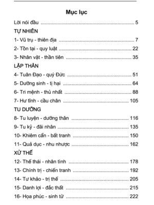 Sách dẫn chứng rất nhiều câu hỏi nổi tiếng, khái quát được tư tưởng chủ đạo của Đạo Lão. Và được sắp xếp thành các phần: