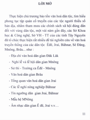 Thực hiện chủ trương bảo tồn văn hoá dân tộc, tìm hiểu phong tục tập quán cổ truyền của các tộc người thiểu số bản địa, nhằm tham mưu các chính sách xã hội đúng đắn đối với vùng dân tộc, một vài năm gần đây, các Sở Khoa học & Công nghệ, Sở VH – TT của các tỉnh Tây Nguyên đã tổ chức thực hiện rất nhiều đề tài nghiên cứu về văn hoá truyền thống của các dân tộc Êđê, Jrai, Bâhnar, Sê Đăng, Mnông, Brâu… như :
