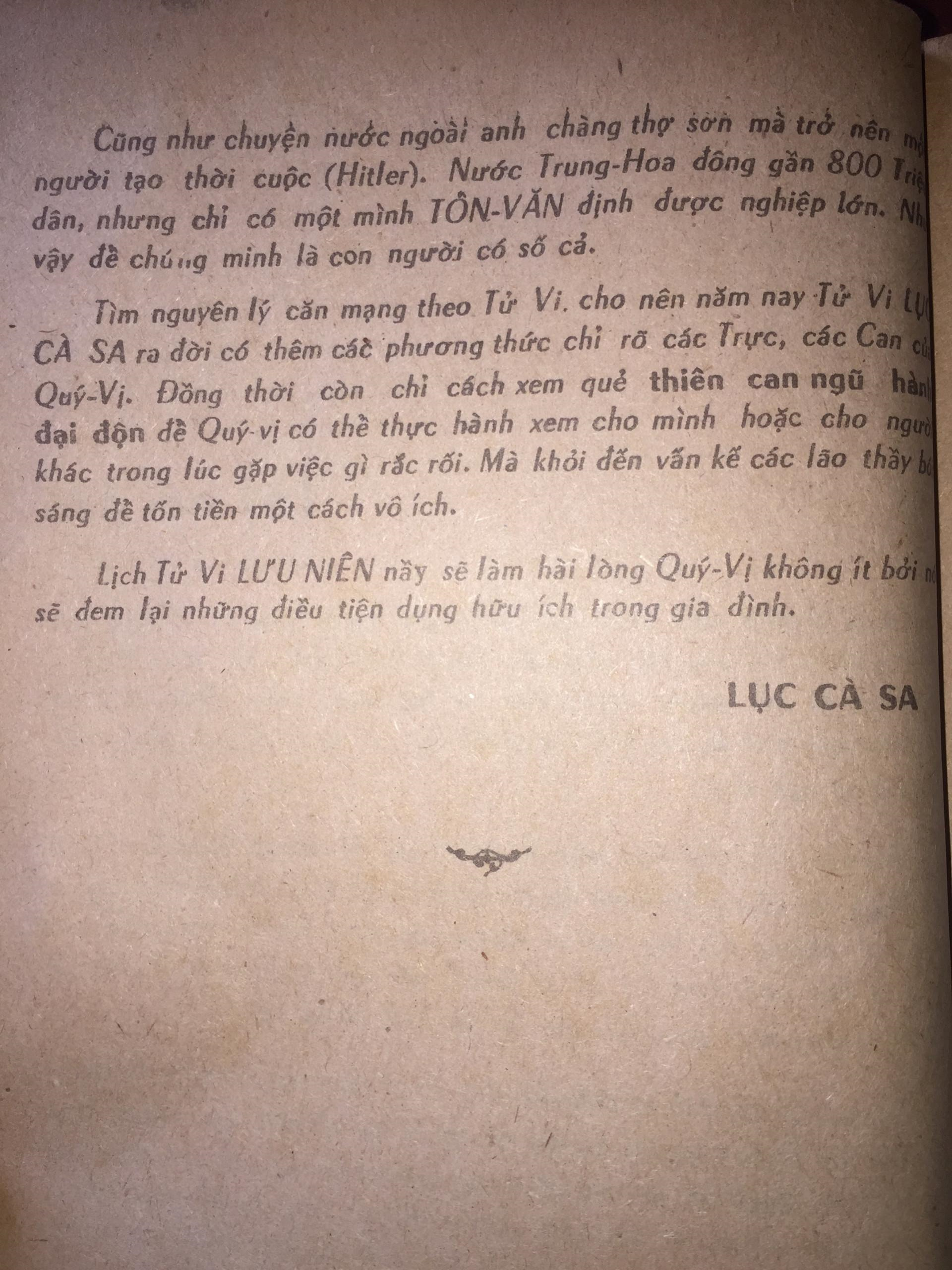 Trong những năm 70 của thế kỷ trước, Lịch tử vi Lục Cà Sa đã được đông đảo quý độc giả bốn phương nhiệt liệt ủng hộ, cuốn Tử Vi Lục Cà Sa chỉ phát hành sau 2 tháng là hết sạch.