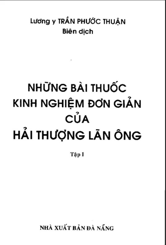 Cuốn sách “Những bài thuốc đơn giản của Hải Thượng Lãn Ông” do nhà xuất bản Đà Nẵng biên soạn là tập hợp những kinh nghiệm điều trị bệnh rất đơn giản từ Hải Thượng Lãn Ông.