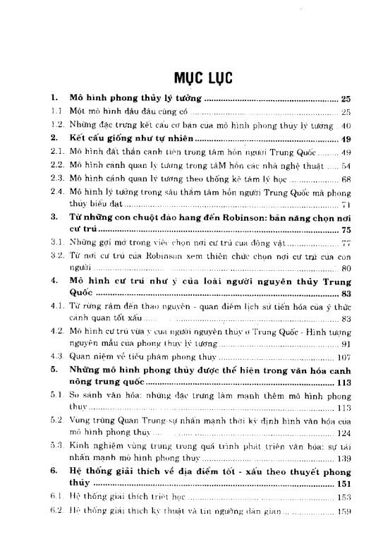 “Không phải thuyết phong thủy gợi ra mô hình lý tưởng của người Trung Quốc (mô hình cảnh quan), trái lại, là mô hình cảnh quan lý tưởng có được từ nền văn hóa đã in hằn trong tim người Trung Quốc, dẫn đến những suy luận trực quan về cơ sở lý luận của thuyết phong thủy, tiến thêm một bước gán ghép vào hệ thống giải thích trên cơ sở triết học Trung Quốc” . Cuối cùng, tác giả kết luận “cơ sở lý luận của phong thủy bản thân nó vốn không có nhiều ý nghĩa to lớn, nhưng sự lý tưởng về cảnh quan trọng tầng sâu của phong thủy mới thật sự đáng để chúng ta xem trọng. Đây cũng chính là điểm xuất phát của quyển sách này.”