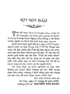 Cuốn sách Trật Đả Toàn Khoa (Trật Đả Cốt Khoa) – Lương Y Võ Sư Nguyễn Tấn Xuân này giúp bạn có thể tự luyện tập để trang bị cho mình vốn hiểu biết về một phương pháp trị liệu tốt, tiến tới có thể góp phần phát huy ngành trật đả cốt khoa này.