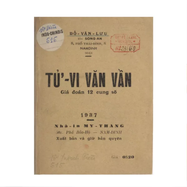 Sách: Tử Vi Văn Vần – Đỗ Văn Lưu – XB 1937